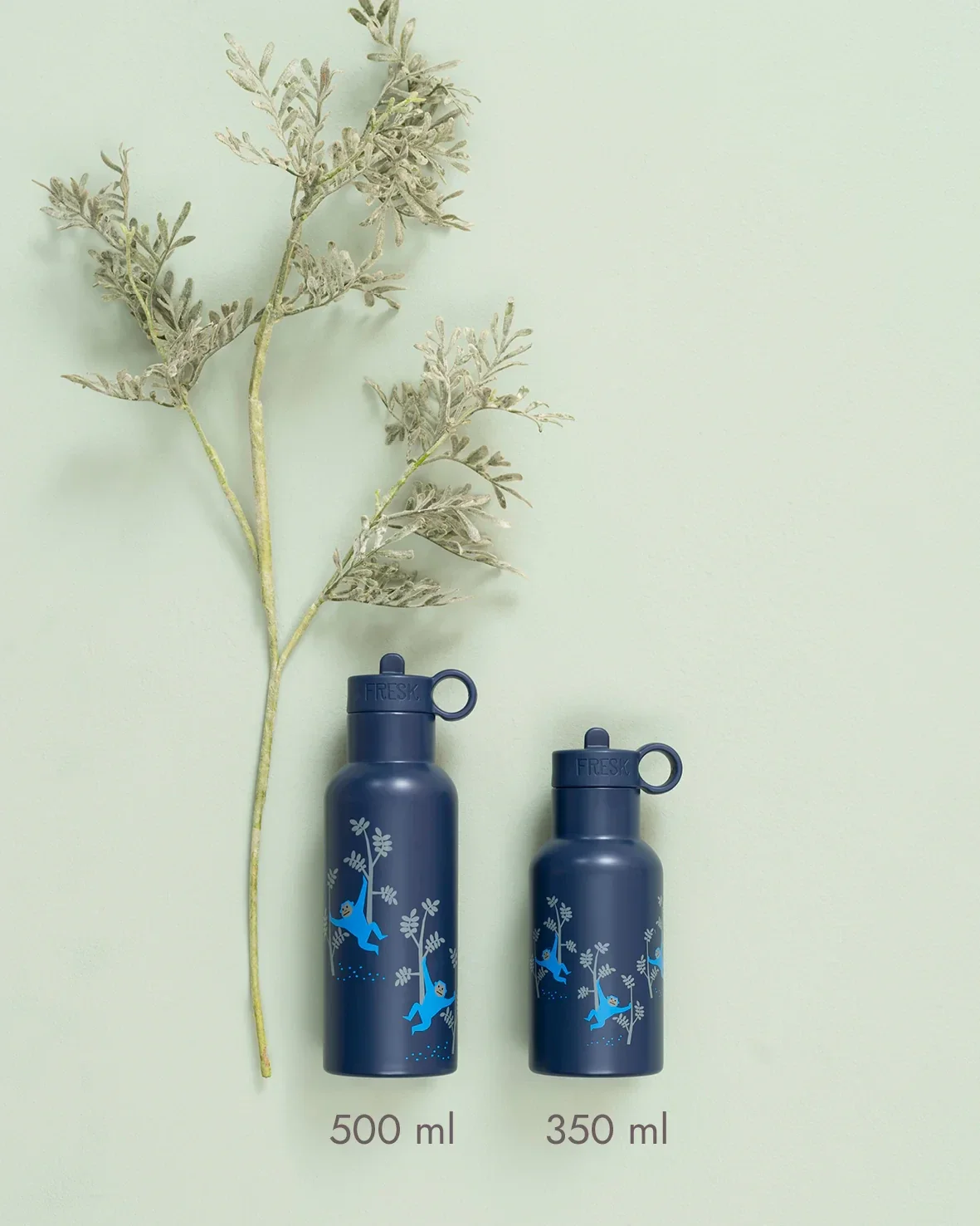 De handige RVS drinkfles 'Nordic Flask - Monkey' van het Nederlandse merk Fresk heeft een inhoud van 500 ml, perfect voor een pauze met een warme of koude drank.