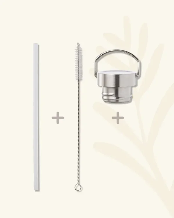 De lekvrije (kinder)fles word geleverd met twee verschillende doppen. Eén dop met tuit waaraan een rietje is bevestigd. De andere dop is een stalen draaidop. Beide doppen hebben een hengsel om de beker aan vast te houden.
